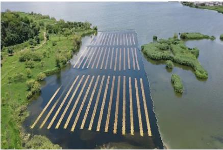該項(xiàng)目圍隔分離出11500㎡相對(duì)封閉水域,在水面敷設(shè)水域占比面積為31.7%的光催化網(wǎng),進(jìn)行了光催化技術(shù)試驗(yàn)示范研究