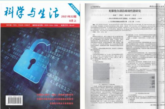 介紹:2021年10月,燕山大學(xué)與江蘇雙良環(huán)境科技有限公司在《科學(xué)與生活》雜志上發(fā)表“光催化自清潔玻璃性能研究”一文。