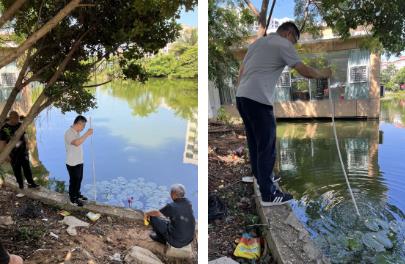 海南項(xiàng)目現(xiàn)場(chǎng)勘查(測(cè)底泥)liS新型光催化網(wǎng)_水庫(kù)治理_河道治理_水生態(tài)修復(fù)_水環(huán)境治理與修復(fù)_江蘇雙良環(huán)境科技有限公司