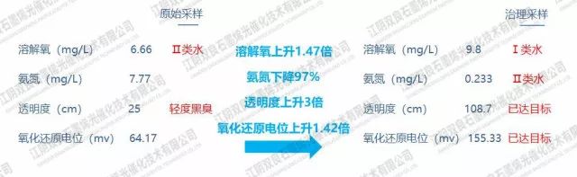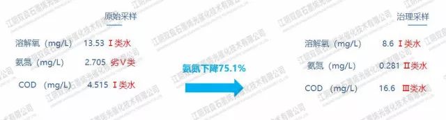治理后為Ⅲ類水標(biāo)準(zhǔn),其中氨氮指標(biāo)大幅度下降。gaP新型光催化網(wǎng)_水庫治理_河道治理_水生態(tài)修復(fù)_水環(huán)境治理與修復(fù)_江蘇雙良環(huán)境科技有限公司