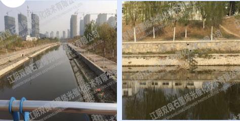 治理前為重度黑臭水體,透明度僅為30cm。治理目標(biāo)是消除表觀黑臭。gaP新型光催化網(wǎng)_水庫治理_河道治理_水生態(tài)修復(fù)_水環(huán)境治理與修復(fù)_江蘇雙良環(huán)境科技有限公司