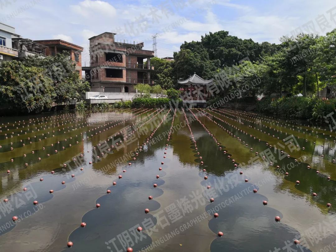 經過一個多月的治理,黑臭已消除,水質已達Ⅳ類水標準!YQj新型光催化網_水庫治理_河道治理_水生態(tài)修復_水環(huán)境治理與修復_江蘇雙良環(huán)境科技有限公司