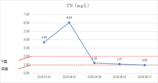 總結(jié)分析:該治理區(qū)域采用光催化技術(shù),在短時(shí)間內(nèi)迅速提升水質(zhì)。經(jīng)過3個(gè)月的治理之后,根據(jù)第三方數(shù)據(jù)顯示,期間6月5日指標(biāo)有所變差,原因?yàn)檫M(jìn)入雨季,暴雨之后雨水?dāng)y帶污染物徑流至治理區(qū)域,出雨季后,指標(biāo)穩(wěn)步好轉(zhuǎn)。治理區(qū)域圍隔內(nèi)透明度及觀感明顯好于治理區(qū)圍隔外。長興湖治理區(qū)域現(xiàn)已達(dá)到要求的IV類水標(biāo)準(zhǔn),治理效果顯著。EVk新型光催化網(wǎng)_水庫治理_河道治理_水生態(tài)修復(fù)_水環(huán)境治理與修復(fù)_江蘇雙良環(huán)境科技有限公司