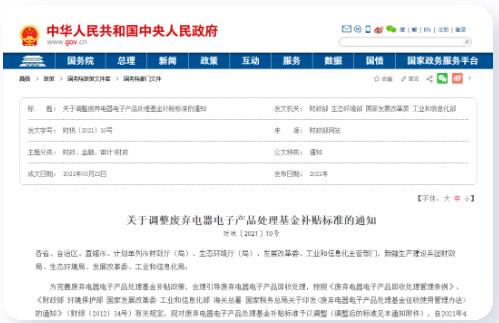 財(cái)政部、生態(tài)環(huán)境部等四部門聯(lián)合印發(fā)《關(guān)于調(diào)整廢棄電器電子產(chǎn)品處理基金補(bǔ)貼標(biāo)準(zhǔn)的通知》,自2021年4月1日起施行。其中,14寸及以上且25寸以下陰極射線管電視機(jī)每臺(tái)補(bǔ)貼40元,單桶洗衣機(jī)、脫水機(jī)(3公斤<干衣量≤10公斤)每臺(tái)補(bǔ)貼25元,整體式空調(diào)器、分體式空調(diào)器、一拖多空調(diào)器(含室外機(jī)和室內(nèi)機(jī))(制冷量≤14000瓦)每臺(tái)補(bǔ)貼100元。rk4新型光催化網(wǎng)_水庫治理_河道治理_水生態(tài)修復(fù)_水環(huán)境治理與修復(fù)_江蘇雙良環(huán)境科技有限公司