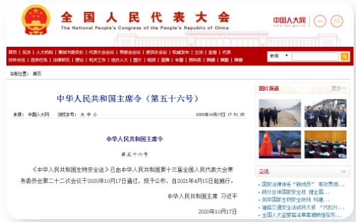 2020年10月17日,十三屆全國人大常委會(huì)第二十二次會(huì)議表決通過了《中華人民共和國生物安全法》,這部法律自2021年4月15日起施行。rk4新型光催化網(wǎng)_水庫治理_河道治理_水生態(tài)修復(fù)_水環(huán)境治理與修復(fù)_江蘇雙良環(huán)境科技有限公司
