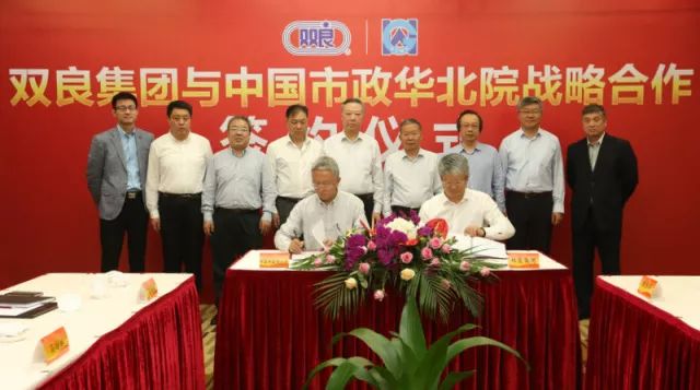 雙良集團馬培林總裁與中國市政華北院吳凡松總經理一起簽署了戰(zhàn)略合作協(xié)議
