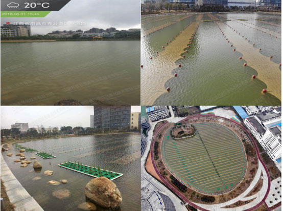 項目概述:高潮湖位于南昌市工業(yè)園區(qū)內(nèi),金鷹路以北,航空路以西,是一個封閉型景觀湖,呈圓形。周邊為硬質(zhì)岸坡,湖岸上四周為景觀綠化帶。湖岸以內(nèi)約4m范圍為淺灘,用堆石固定。湖底由外到內(nèi)逐漸加深,水深約1.5-2m。由于前期高潮湖已徹底改造,湖中無任何水生動植物,水中生態(tài)基本被破壞,水體失去自凈能力,水體較渾濁。80T新型光催化網(wǎng)_水庫治理_河道治理_水生態(tài)修復(fù)_水環(huán)境治理與修復(fù)_江蘇雙良環(huán)境科技有限公司