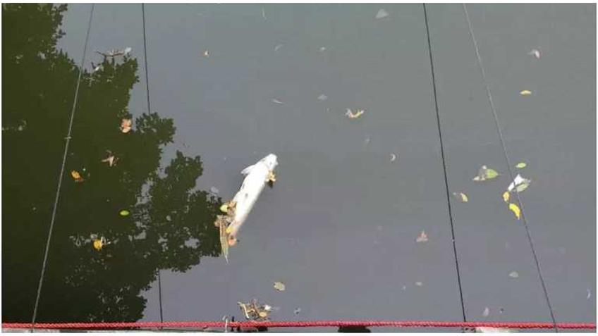 治理前塘內(nèi)水體渾濁,水面臟亂,排口處漂浮死魚;經(jīng)檢測(cè),水中溶解氧僅0.8mg/L,透明度僅16cm,屬于劣V類水。lX2新型光催化網(wǎng)_水庫(kù)治理_河道治理_水生態(tài)修復(fù)_水環(huán)境治理與修復(fù)_江蘇雙良環(huán)境科技有限公司