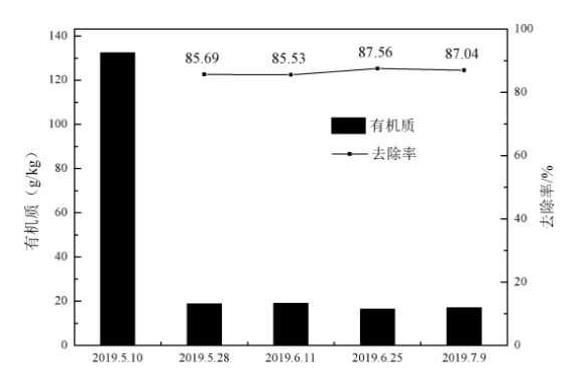 由圖可以看出經(jīng)過(guò)治理后,底泥中有機(jī)質(zhì)的含量大幅度減少,到2019年7月9日,平均去除率達(dá)到87.04%。lX2新型光催化網(wǎng)_水庫(kù)治理_河道治理_水生態(tài)修復(fù)_水環(huán)境治理與修復(fù)_江蘇雙良環(huán)境科技有限公司