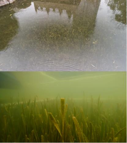 ▲治理區(qū)水體通透,水下水草茂盛Dxk新型光催化網(wǎng)_水庫(kù)治理_河道治理_水生態(tài)修復(fù)_水環(huán)境治理與修復(fù)_江蘇雙良環(huán)境科技有限公司