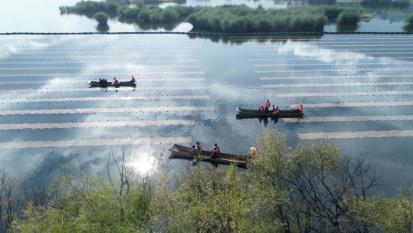 ▲治理區(qū)水草自然生長(zhǎng)、水鳥(niǎo)棲息、野鴨成群Dxk新型光催化網(wǎng)_水庫(kù)治理_河道治理_水生態(tài)修復(fù)_水環(huán)境治理與修復(fù)_江蘇雙良環(huán)境科技有限公司