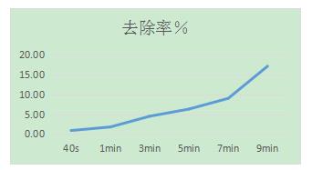 根據(jù)40s—9min超聲藻液細胞數(shù)的計數(shù),計算出去除率,制作曲線,去圖所示:gEY新型光催化網(wǎng)_水庫治理_河道治理_水生態(tài)修復(fù)_水環(huán)境治理與修復(fù)_江蘇雙良環(huán)境科技有限公司