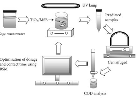 2/MSB混合物有較高的COD去除能力。此外,曝氣還使COD去除率進一步提高了11%。模型的回歸值R2>0.99,表明評估參數(shù)之間存在高度的相關(guān)性。這些結(jié)果證明了TiO2光催化作為一種有吸引力的淀粉廠廢水處理替代方案的可行性,工業(yè)固體廢物可用于廢水降解。