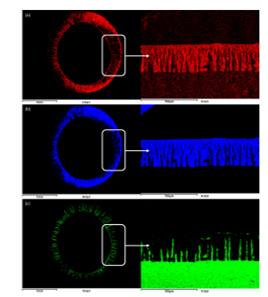 圖2 浸漬TiO2((a)、氧(b)、鋁(c)的不對(duì)稱(chēng)氧化鋁中空纖維載體的EDS圖像r1K新型光催化網(wǎng)_水庫(kù)治理_河道治理_水生態(tài)修復(fù)_水環(huán)境治理與修復(fù)_江蘇雙良環(huán)境科技有限公司