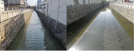 治理前水質(zhì):重度黑臭。1Eo新型光催化網(wǎng)_水庫治理_河道治理_水生態(tài)修復_水環(huán)境治理與修復_江蘇雙良環(huán)境科技有限公司